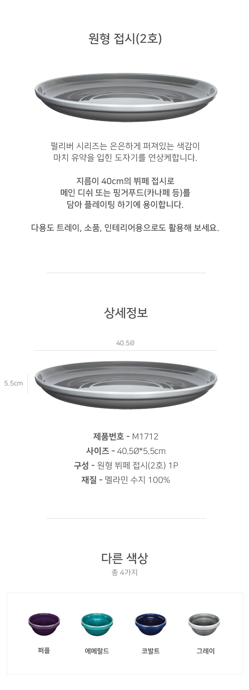 M1712_그레이_대형 뷔페 원형접시 2호(40.5Φ5.5cm)