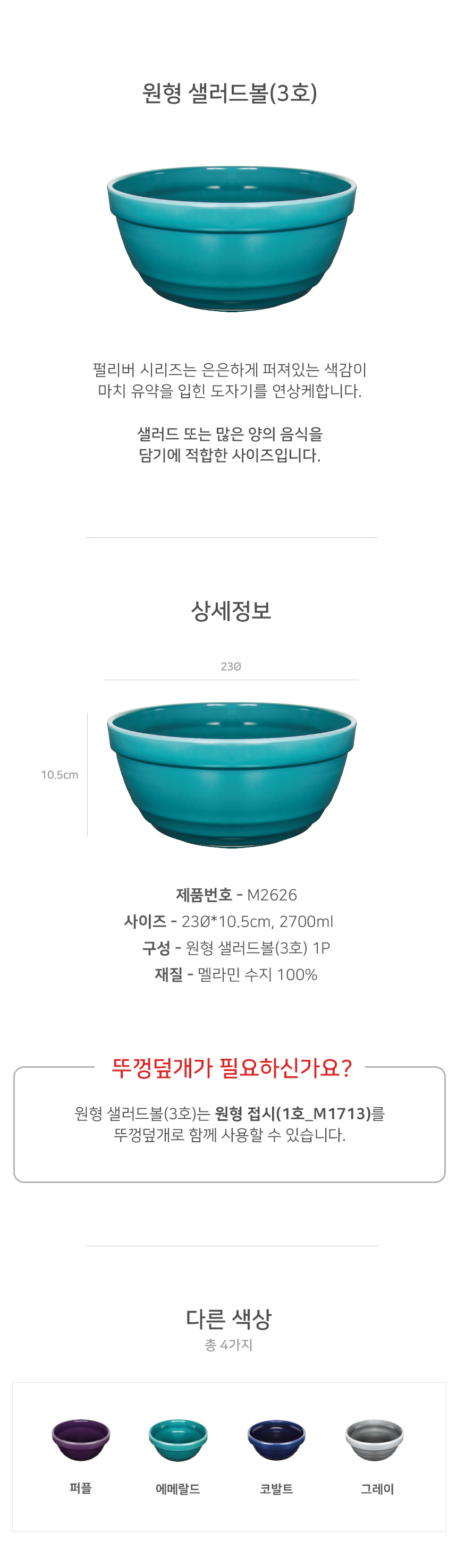 M2626_에메랄드_원형 샐러드볼 3호(23Φ10.5cm)