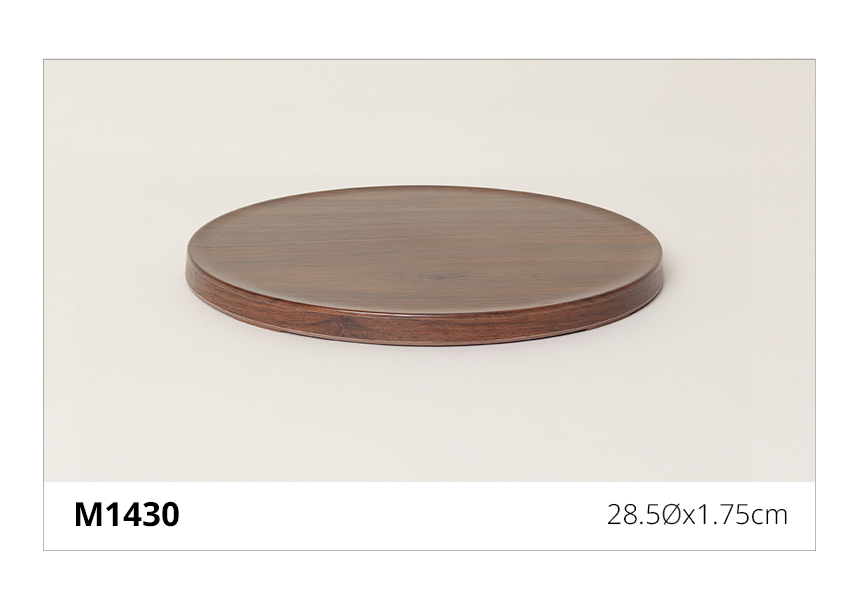 제품명 : 마운트 태 브라운우드 원형 트레이 1호(M1430) 재질 : 프리미엄 멜라민 100% 제조국 : 중국OEM
