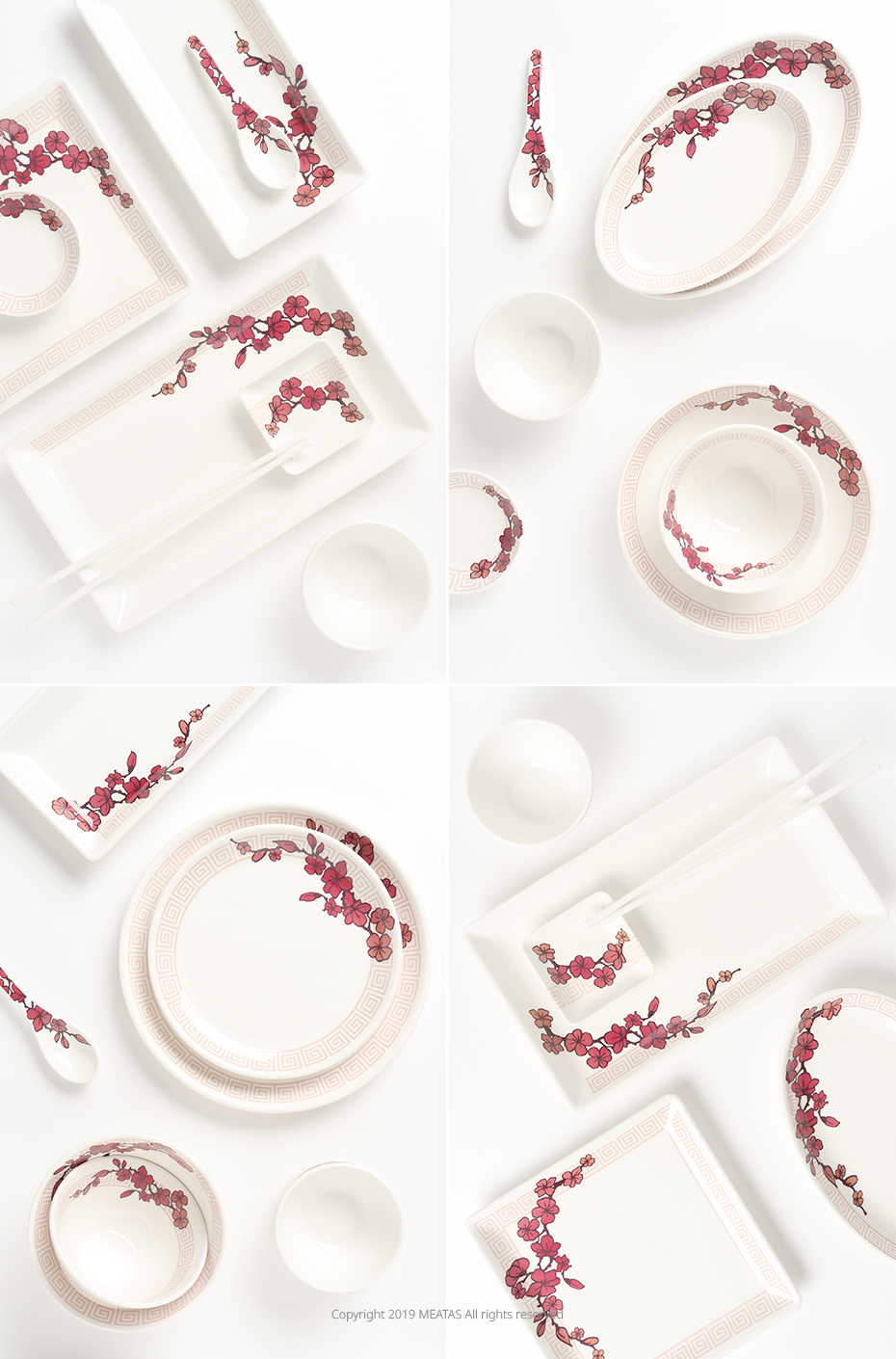사계절 모두 잘 어울리는 플럼블라썸&화이트 프린팅 식기입니다.