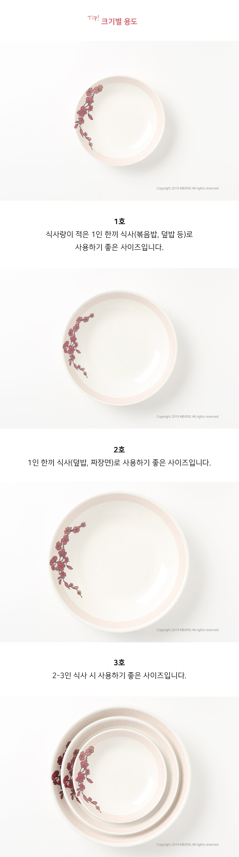 사계절 모두 잘 어울리는 플럼블라썸&화이트 프린팅 식기입니다.