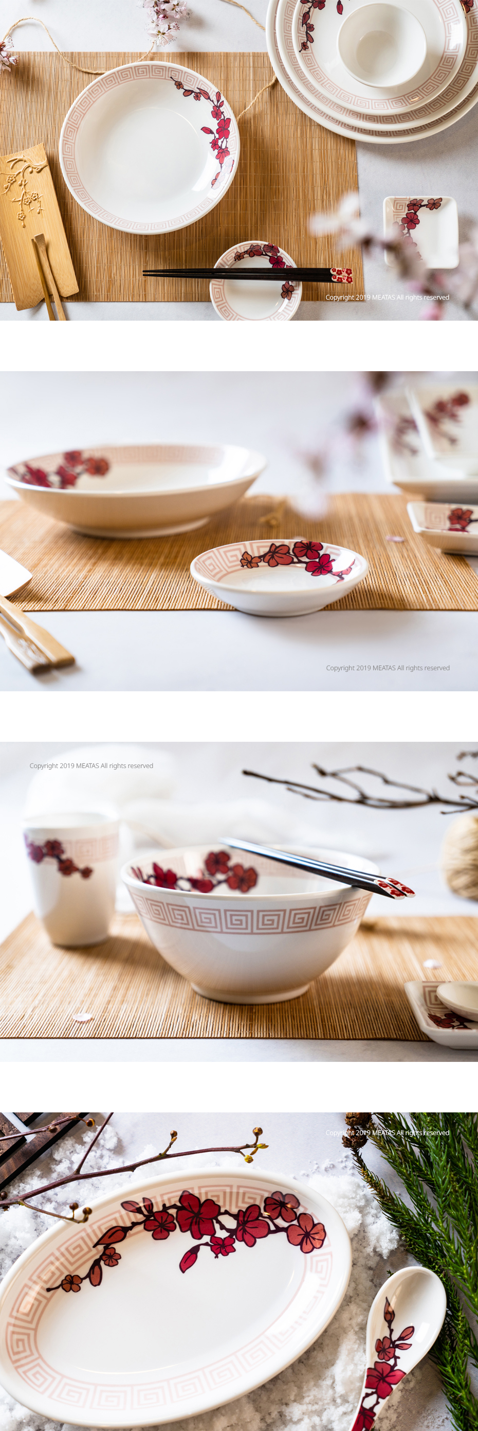 사계절 모두 잘 어울리는 플럼블라썸&화이트 프린팅 식기입니다.