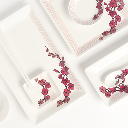 마치 붓으로 그린 듯한 플라워 프린팅으로 특히, 동양음식에 잘 어울립니다.