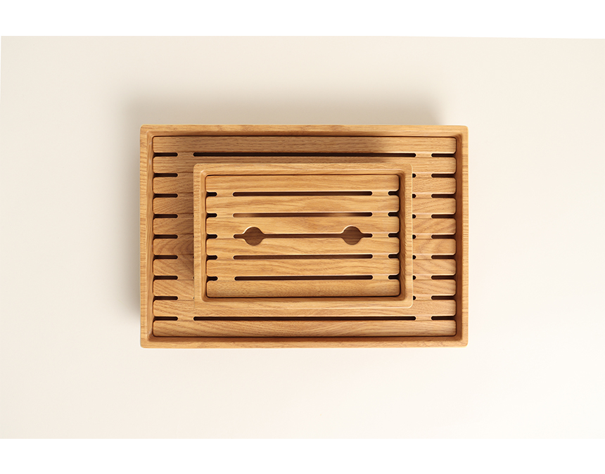 채반의 윗면(음식이 닿는 부분)에 우드 프린팅이 있으며