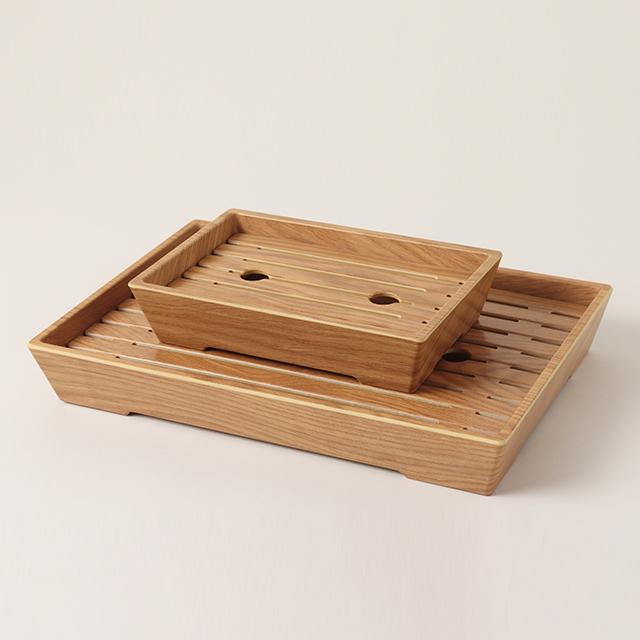 채반의 윗면(음식이 닿는 부분)에 우드 프린팅이 있으며