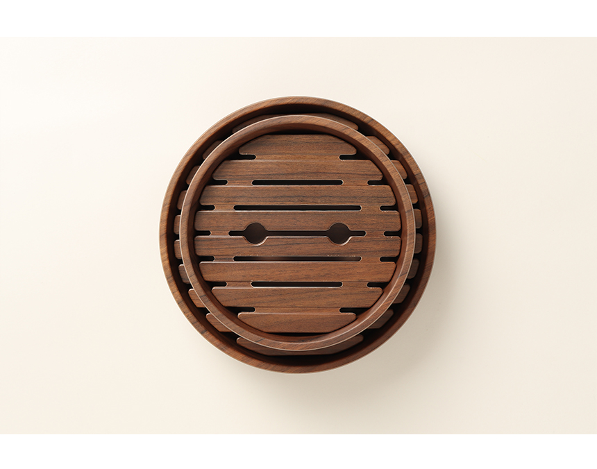 채반의 윗면(음식이 닿는 부분)에 우드 프린팅이 있으며