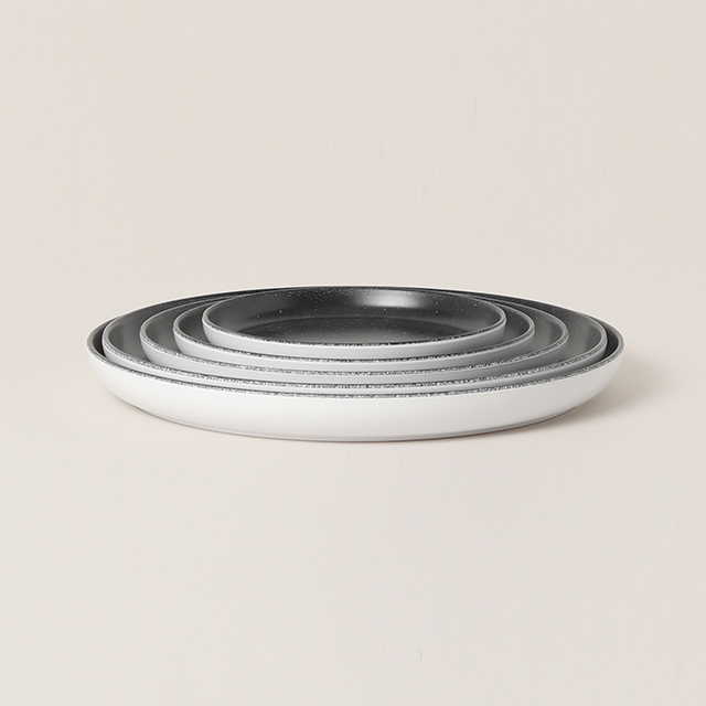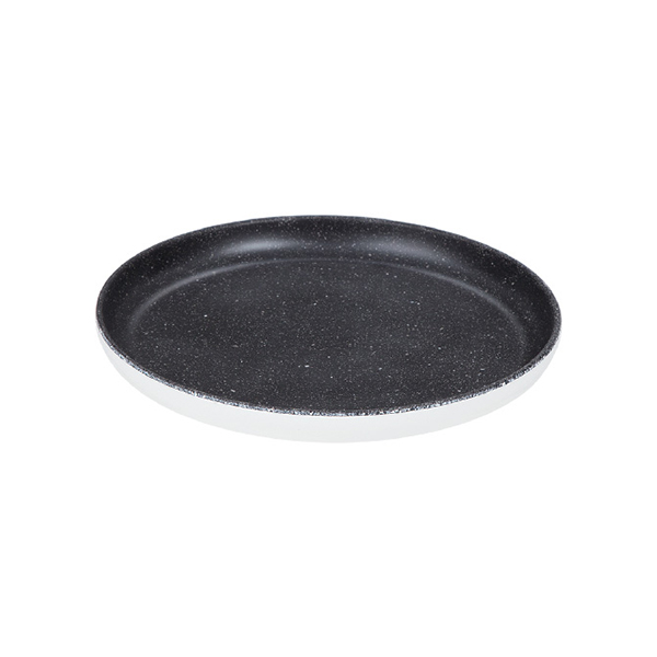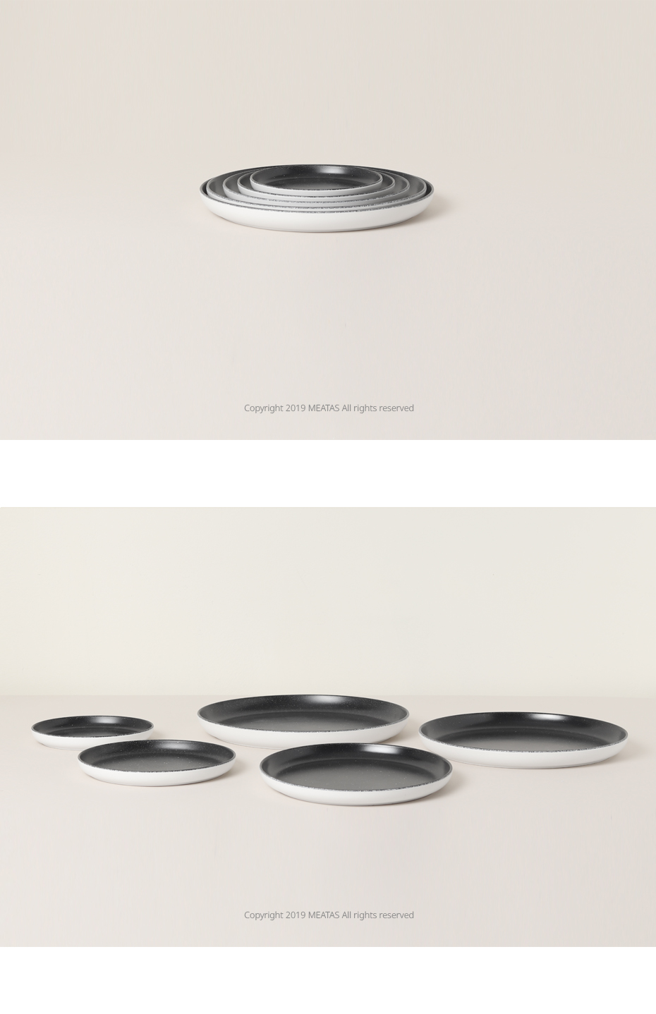 화이트 컬러와 유니크한 블랙스톤이 어우러진 원형접시입니다.
